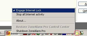 Единственото според мен неудобство на този режим е, че трябва всеки път да се включва ръчно. Както пише и в Help-а, той може да се настрои да се включва автоматично след определен период от време без интернет активност, но явно не може да се настрои да бъде винаги включен. Ето защо трябва след всяко рестартиране да се пуска ръчно. Най-удобно и лесно е да се кликне с десен бутон върху иконката на Zone Alarm в tray-я и да се избере опцията Engage Internet Lock.